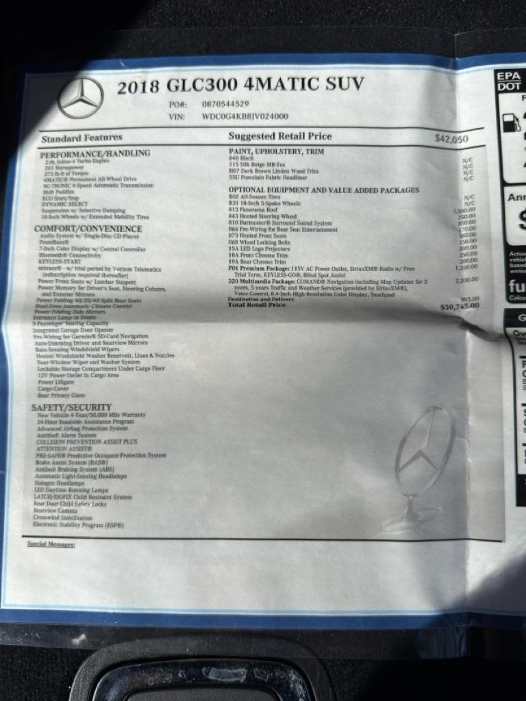 2018 Mercedes-Benz GLC-Class GLC300 4MATIC